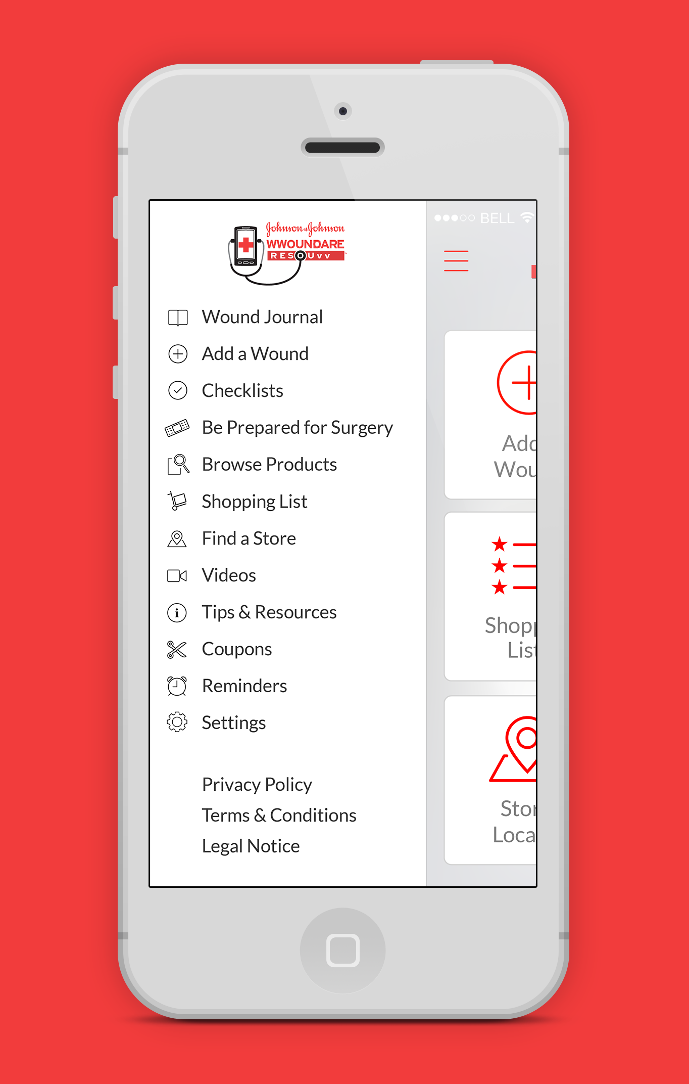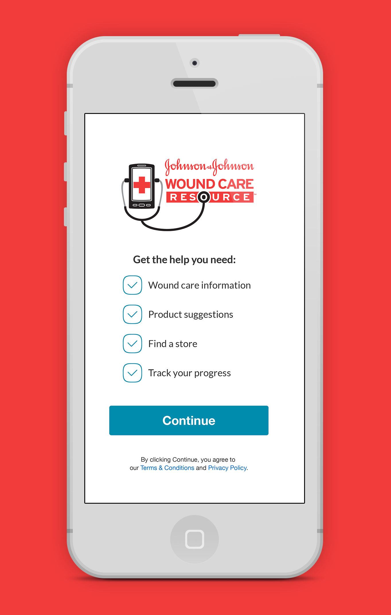 I designed the Johnson & Johnson Wound Care Resource™ app screens for both iOS and Android. An essential wound care tool, the app helps patients and care providers identify new wounds, track everyday treatment checklists, and access recommendations — making it a key resource for managing wound care from initial assessment through continued treatment.