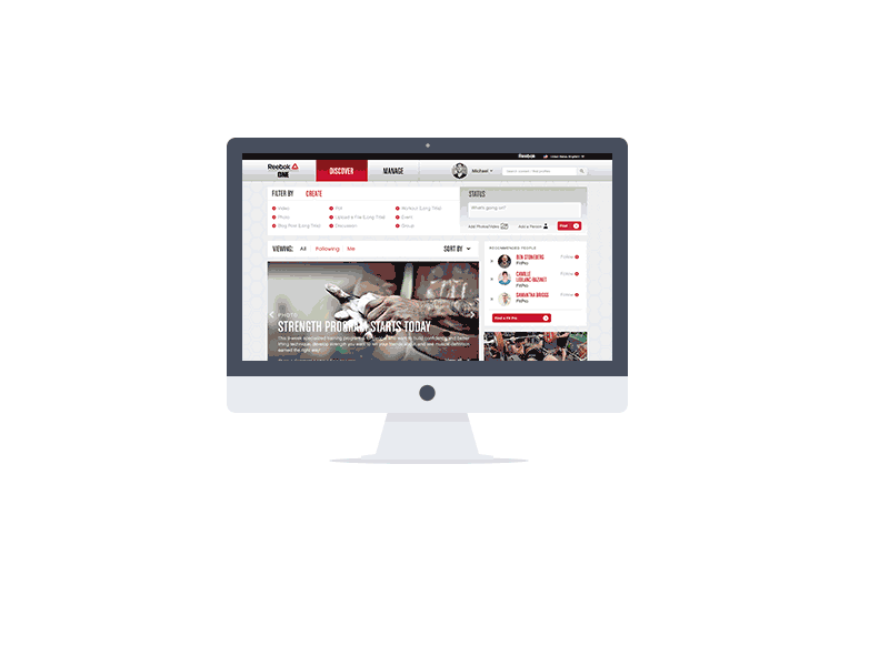 Although new-member enrollment was on track to hit the client's forecasted goal, the sales and engagement targets needed attention to stay on track for the year. The ReebokONE website served as a social platform for CrossFit athletes, Spartan racers, personal trainers and fitness enthusiasts. Our team's focus was to make the platform more accessible and to integrate the e-commerce experience with the social content — bridging the gap between community engagement and in-product revenue.