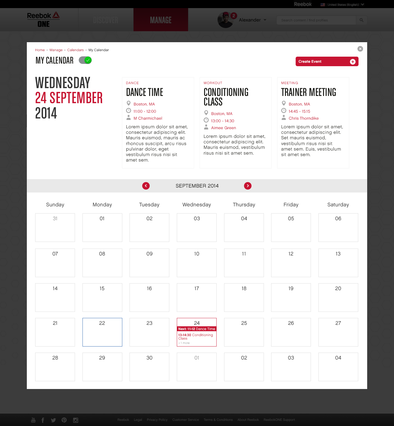 ReebokONE was Reebok's social platform for CrossFit athletes, Spartan racers, personal trainers and fitness enthusiasts — a space for community, content, and commerce. When sales and engagement targets started slipping, our team at Mobiquity was brought in to overhaul the platform's digital strategy and redesign the end-to-end experience. I worked alongside the lead designer to establish a new visual language, conduct a heuristics and IA analysis, and rebuild the experience from the logged-out marketing pages through to the social dashboard, scheduling feature, and e-commerce integration — with Reebok's three core KPIs of acquisition, sales and engagement driving every design decision.