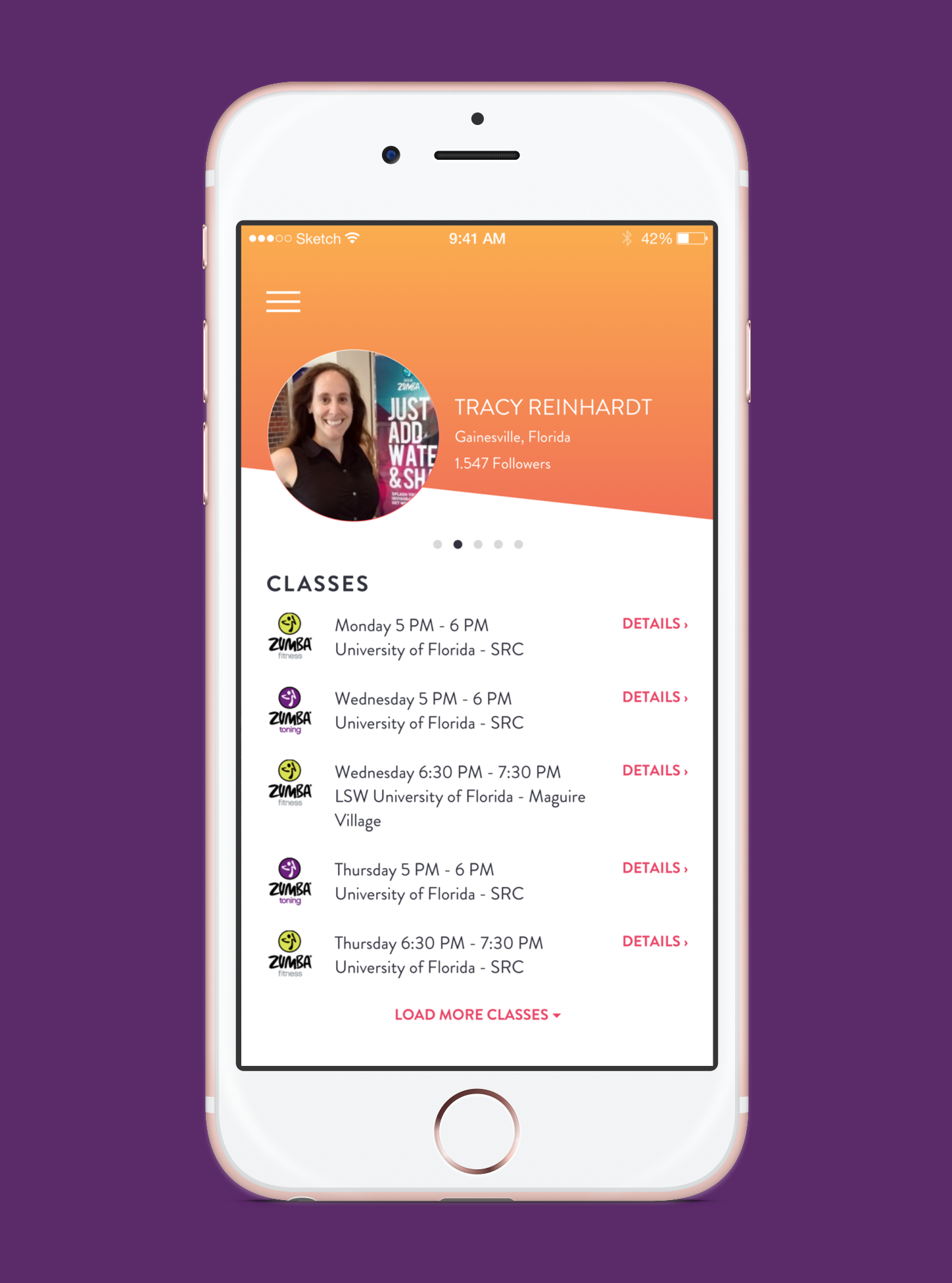 The visual design challenge was bringing Zumba's bold, colorful, movement-forward brand identity into a mobile interface context that still needed to be scannable, navigable, and functional. The result needed to feel unmistakably Zumba while avoiding the clutter that can come from applying a high-energy brand to a UI without restraint.