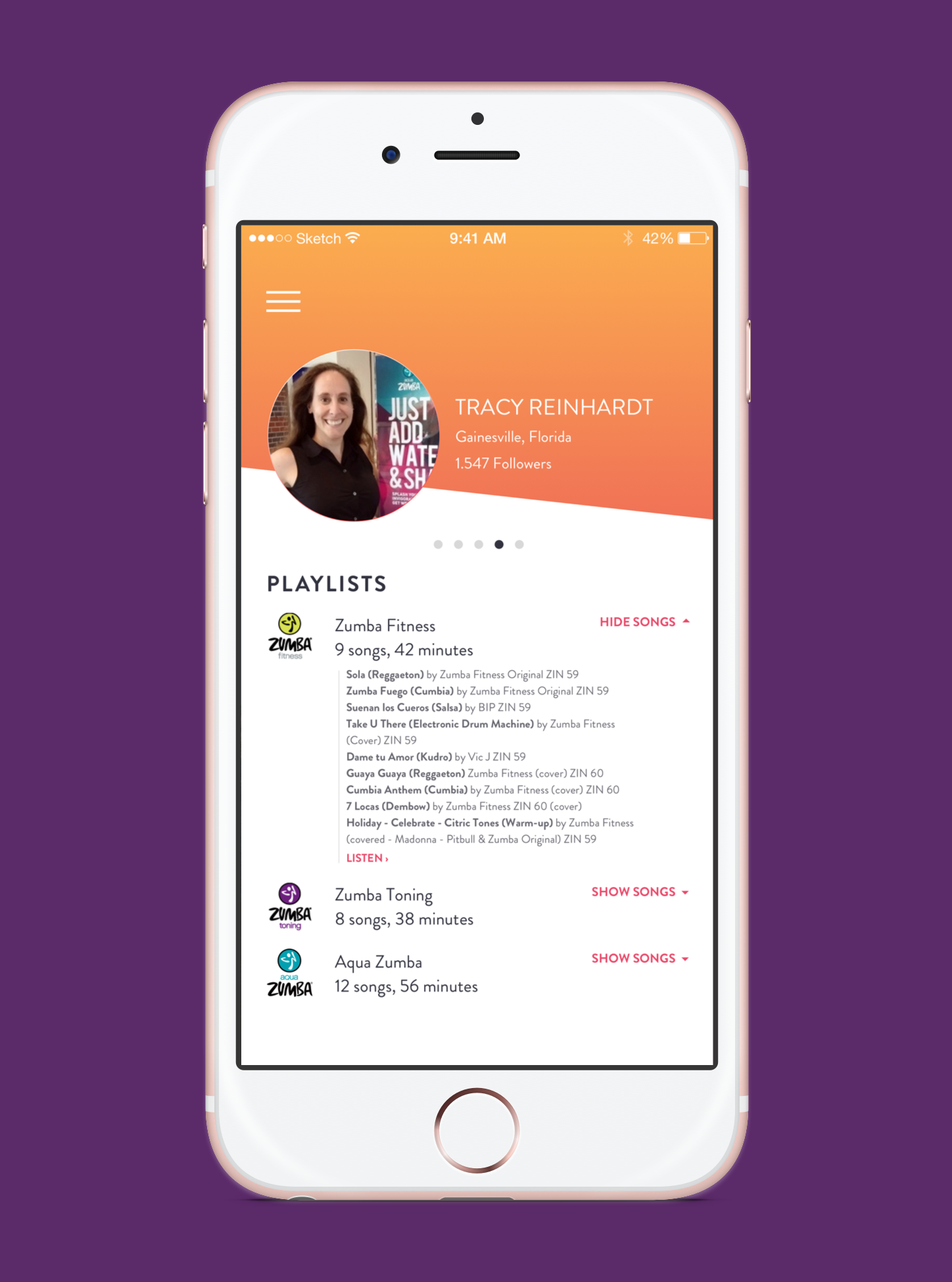 Mobiquity pitched a fitness app concept to Zumba® — the globally recognized dance fitness brand — and I designed the screens for that pitch. The app concept created a social community for both students and instructors, alongside a hub for the company's merchandise store and digital content.