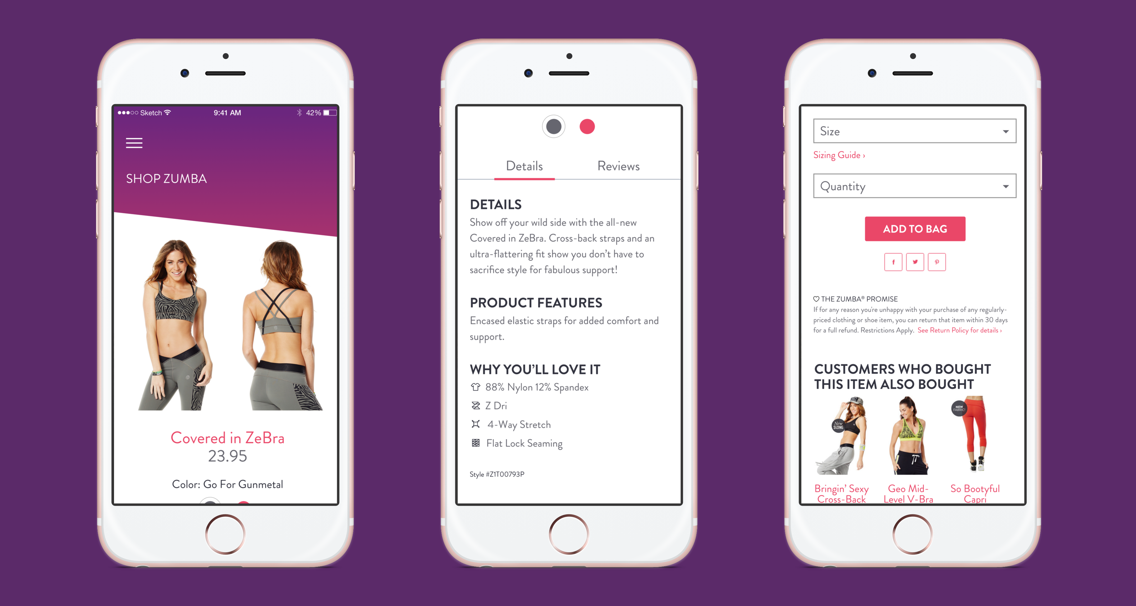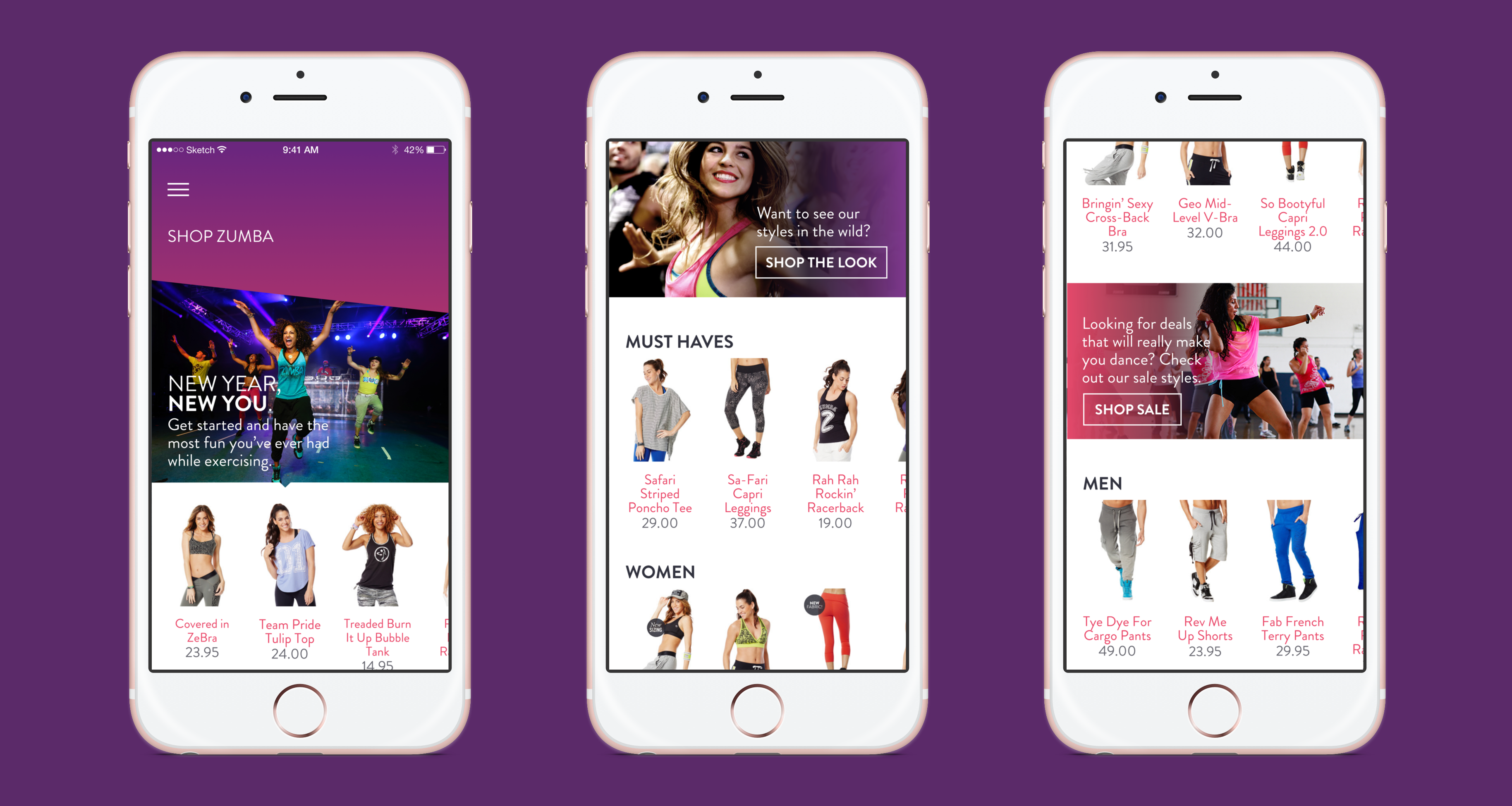 The visual design process began with a brand immersion phase — reviewing Zumba's existing brand guidelines, marketing materials, and physical merchandise to understand how the brand expressed itself across contexts. I identified four brand-consistent visual principles that would guide UI decisions: high energy through color, rhythm through layout patterns, warmth through photography treatment, and boldness through type.