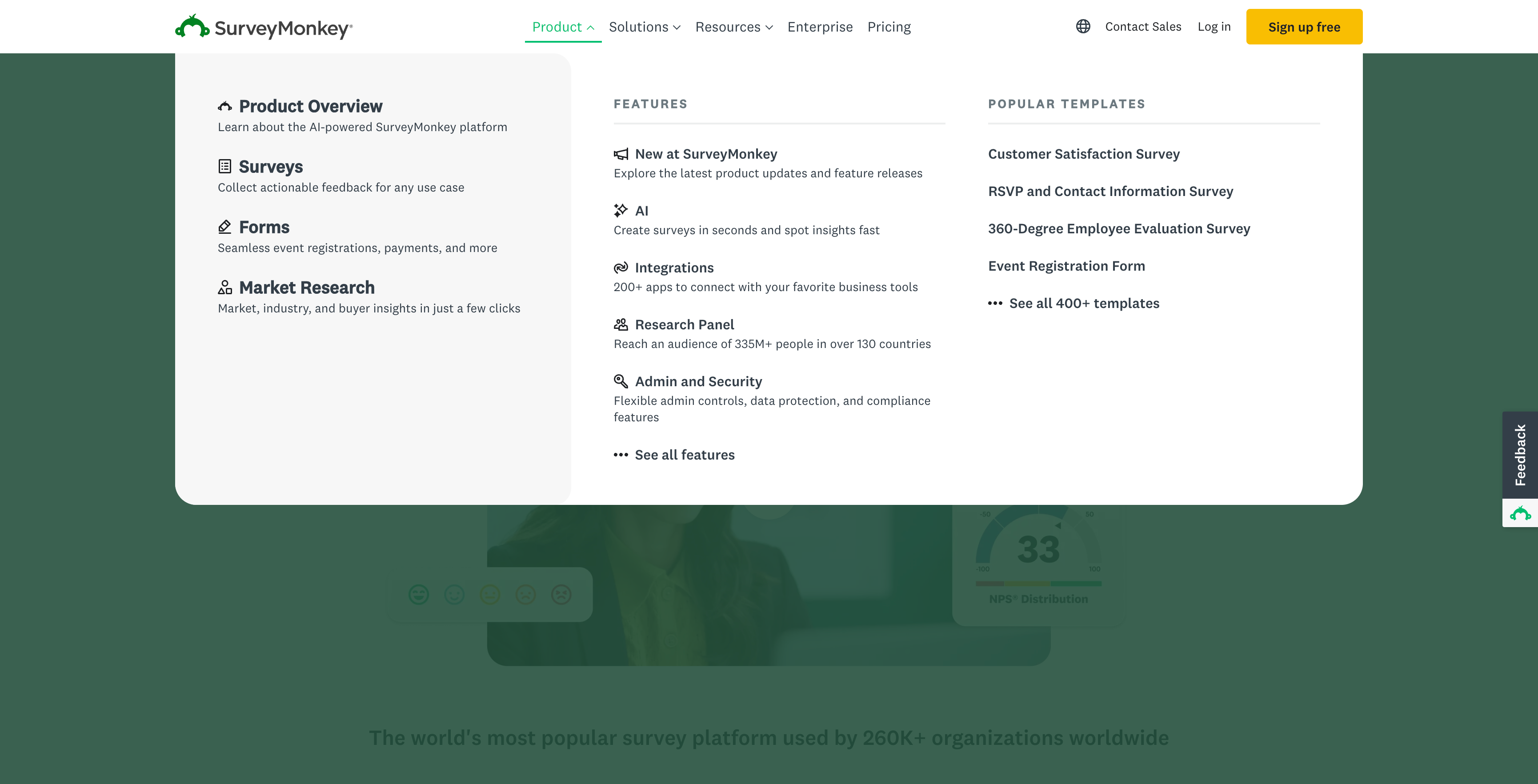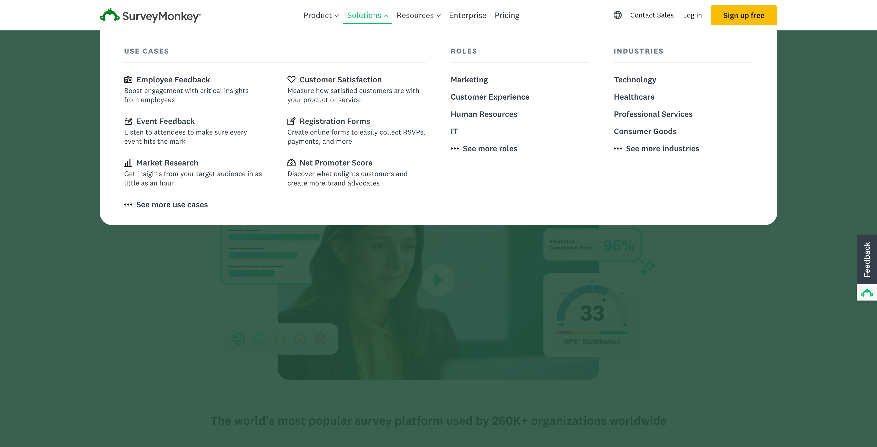 At the time we embarked on building this product, the SurveyMonkey platform provided rich features for all users, but we were not orienting our survey tool to address specific user needs. What if we could stay horizontal to serve a large user base, but also go deep to deliver higher value to our users and business? We imagined users coming to SurveyMonkey to choose a product that is highly tailored to their specific needs and workflows, right on our core survey platform.