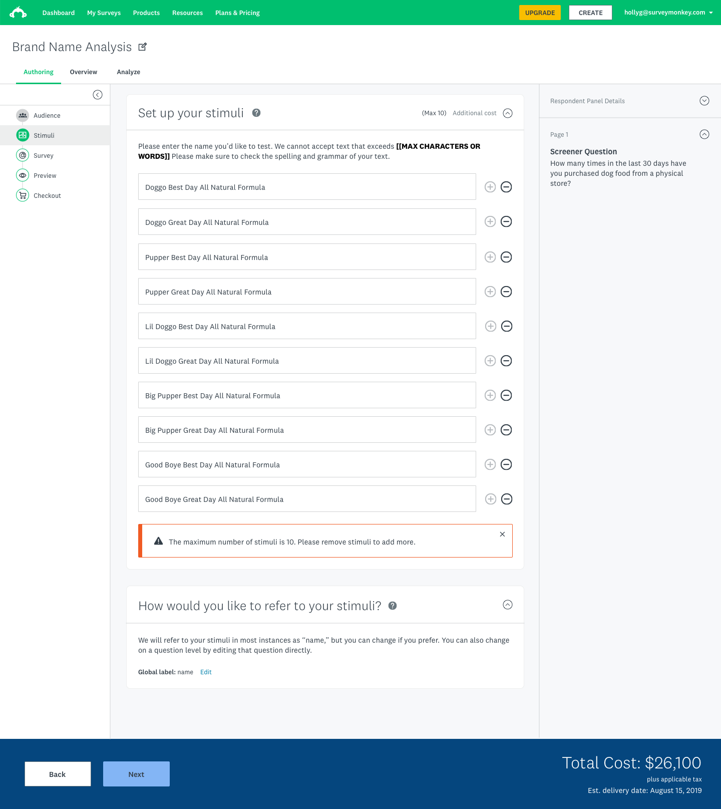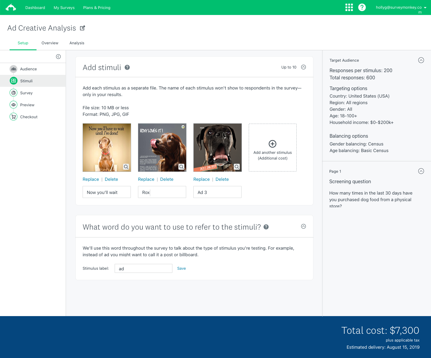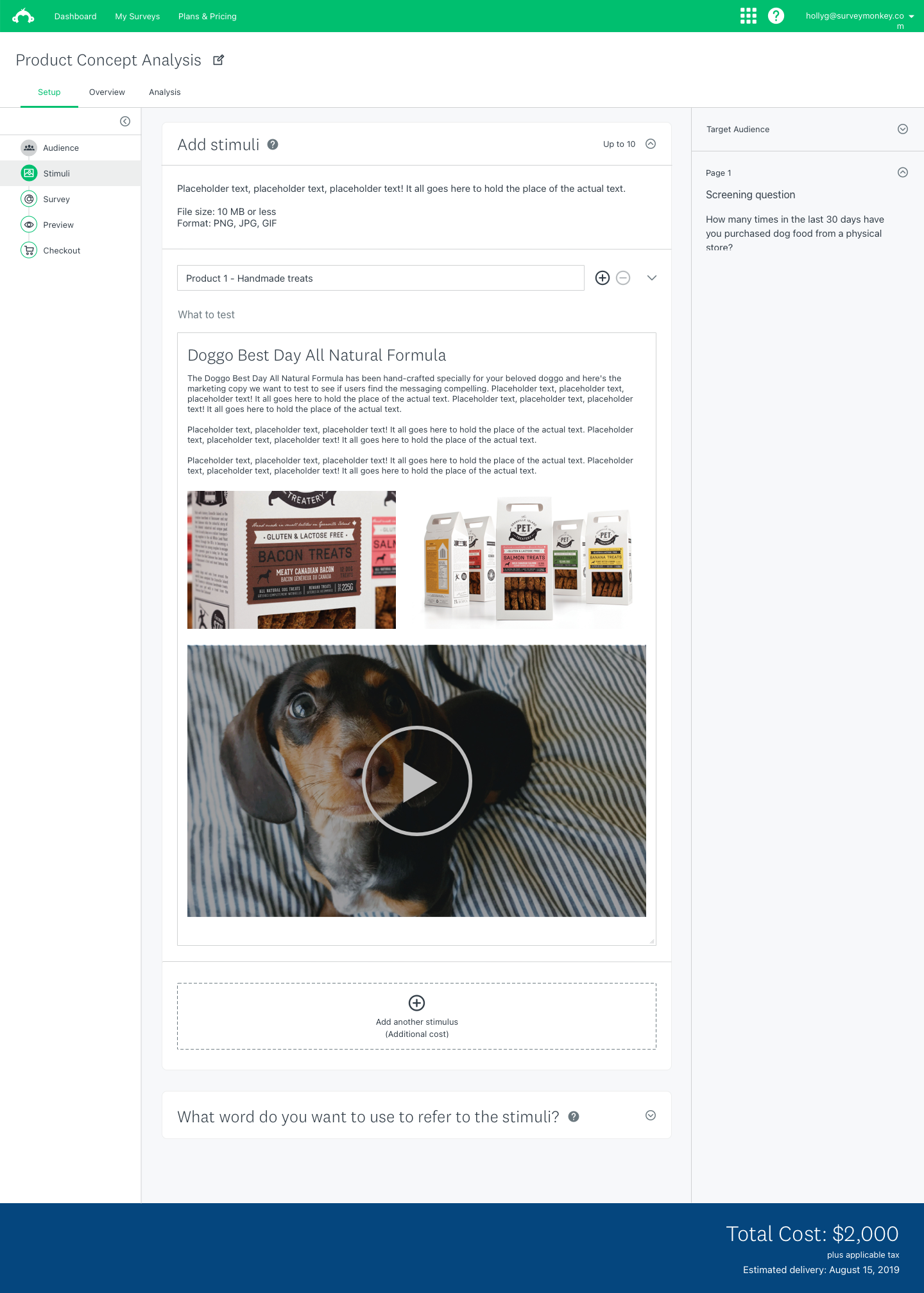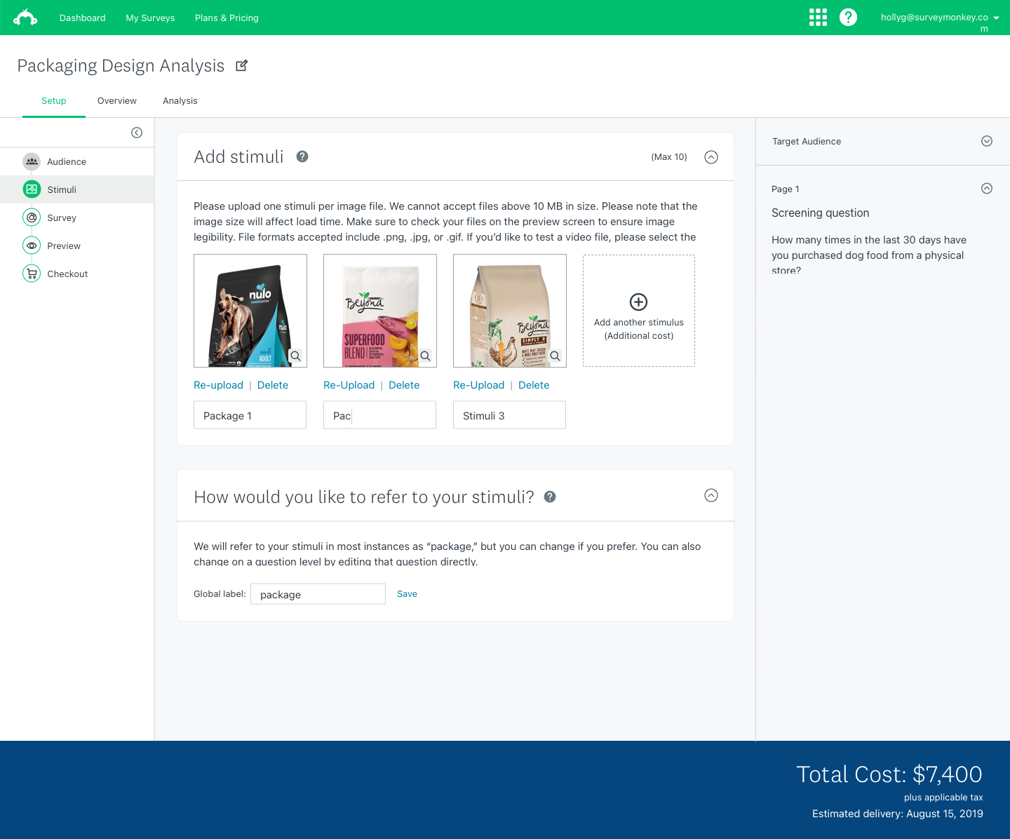 These flows included adding all stimuli users wanted to test for ads, product names, videos, images, and packaging design.