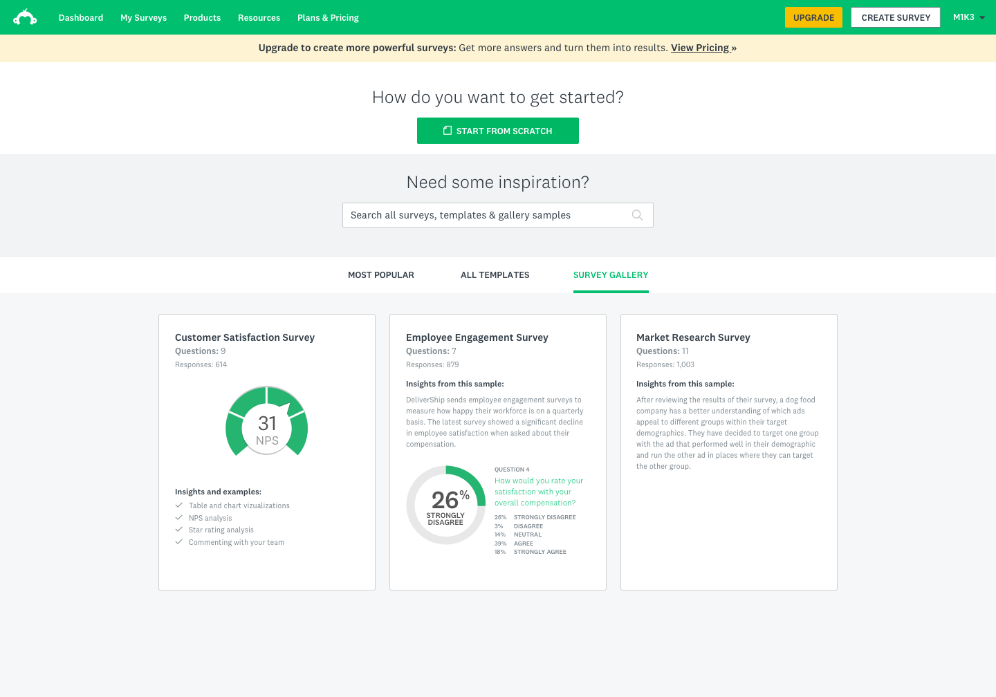 - The logged-in home dashboard — surfacing the gallery as a discoverable entry point for users who hadn't yet created a survey