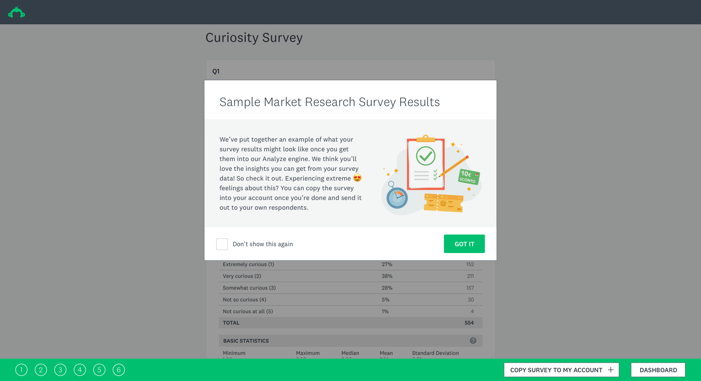 - Users who explored the gallery expressed stronger intent to create their own survey compared to those who saw the dashboard without it