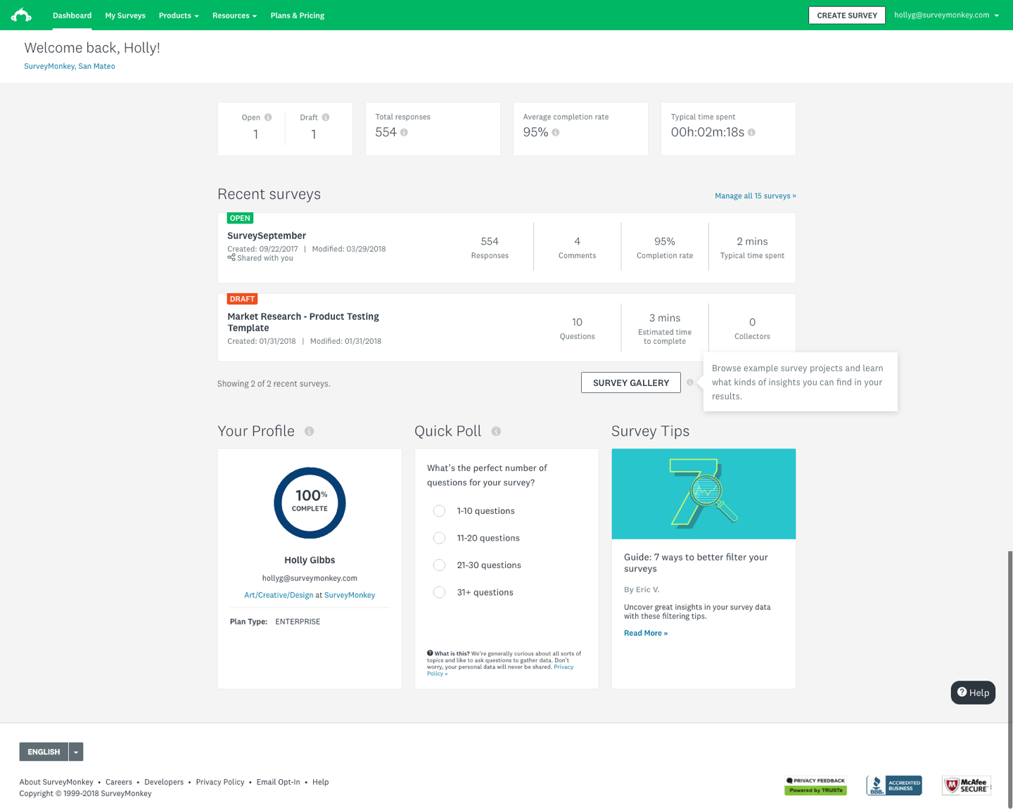 Users who interacted with the Survey Gallery had a 9.2% lift in their survey deploy rates across the board.